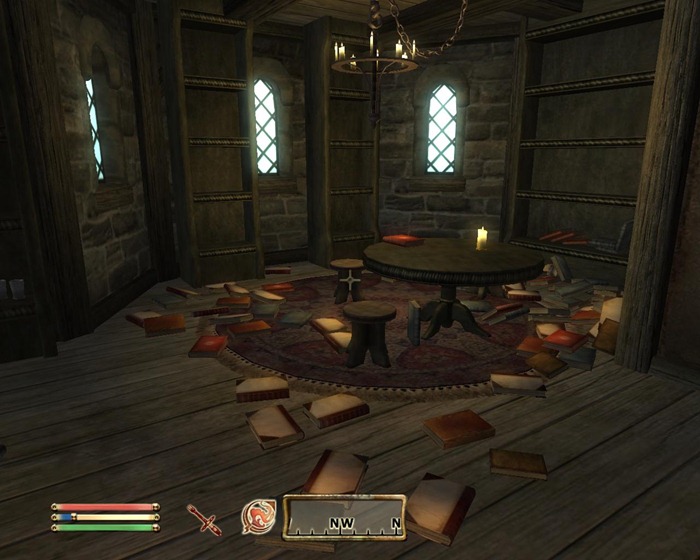 This is another of my favorite screen shots. Oh, if the head of the house could see this. I don’t remember which castle this was in (I think it was Cheydinal) but these two guards got a ‘sit’ command from the Radiant AI and the closest seats were the thrones. Nice.