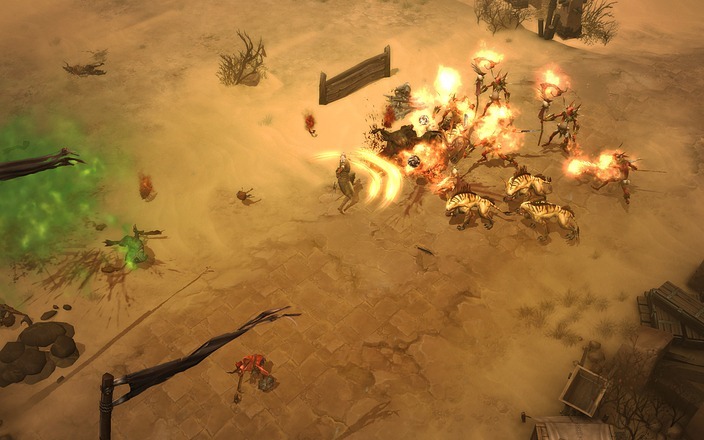 The short answer is, yes. The action is very fun, and considering that the action is over 50% of the experience that is a very good thing. Clicking on baddies with your chosen attack can be slightly unsatisfying at times when they don’t seem to die as fast as you think they should – I’ll explain later – but the varied attacks of the five classes are, for the large part, a blast to use. My main character is a witch doctor and he basically stands off, summoning everything from frogs to spiders to zombies to zombie dogs to a gargantua and still more that allow me to spam the screen with hellspawn-killing creatures. I spent a large chunk of the game with my zombie dogs and a gargantua always by my side, summoning a giant spider in combat and then filling the screen with exploding frogs. Those plus my follower – of which there are three, but only one can follow at a time – meant I wasn’t on the front lines… unless a rare or a champion pack tears through my summoned force and gets in my face, which happened often.